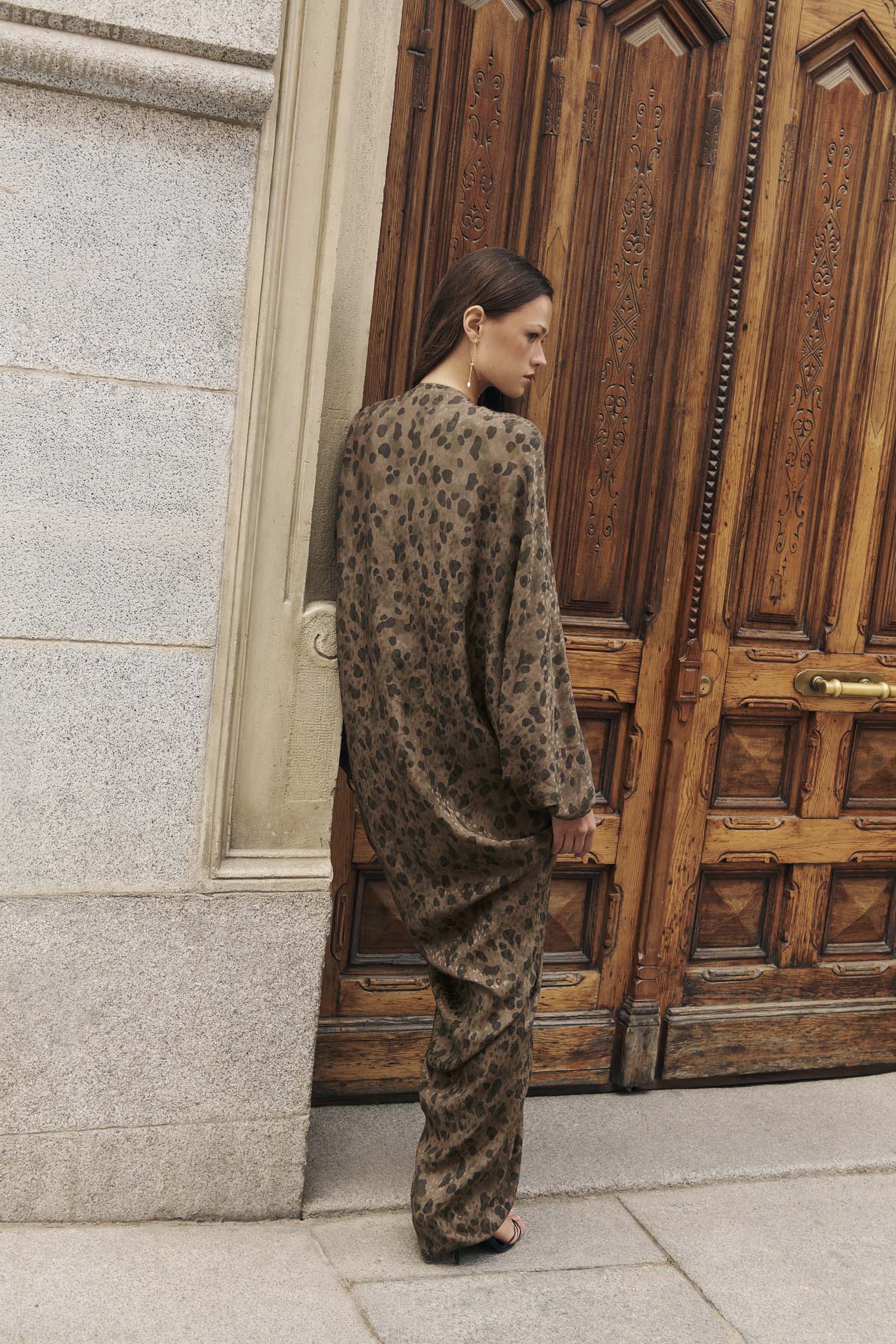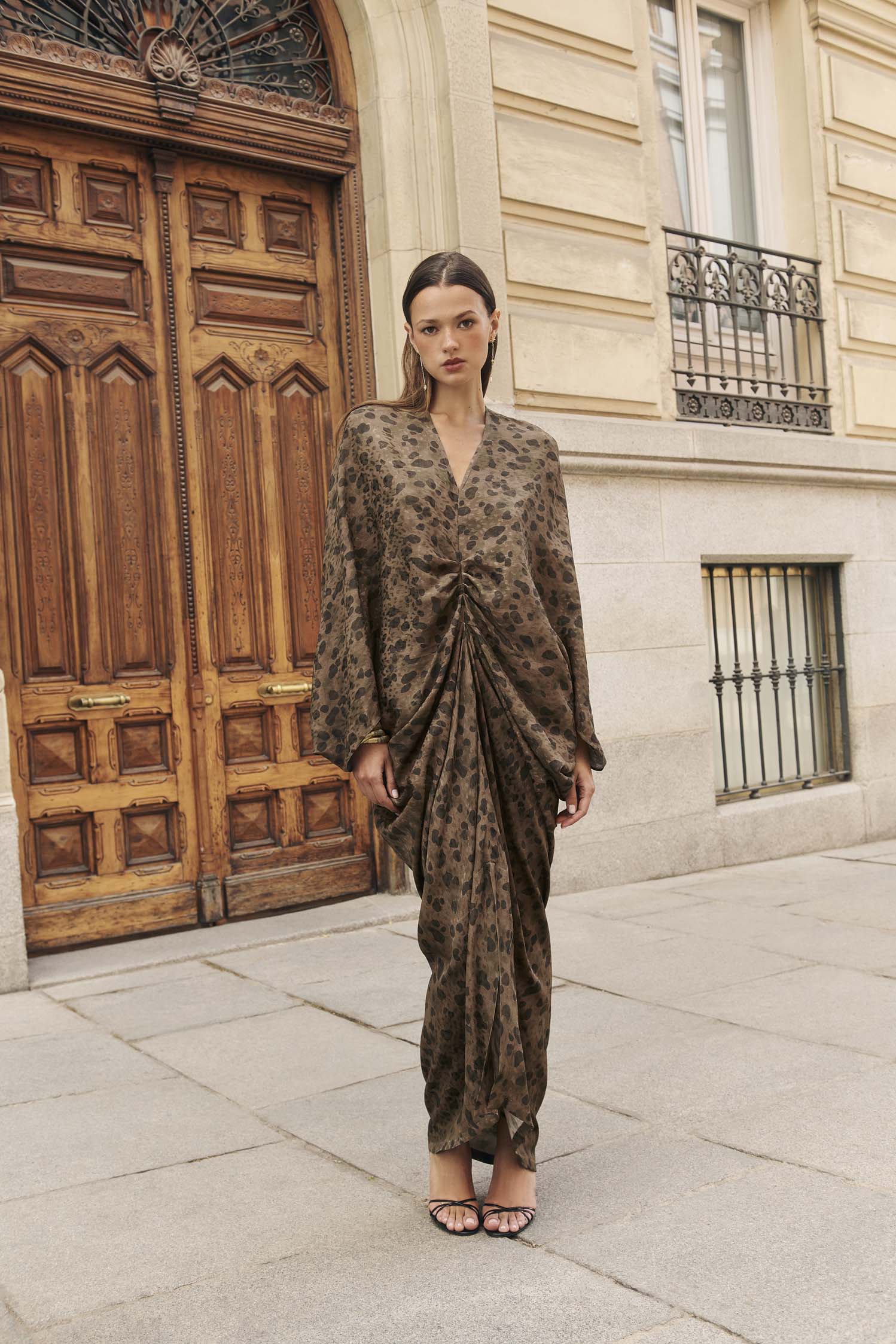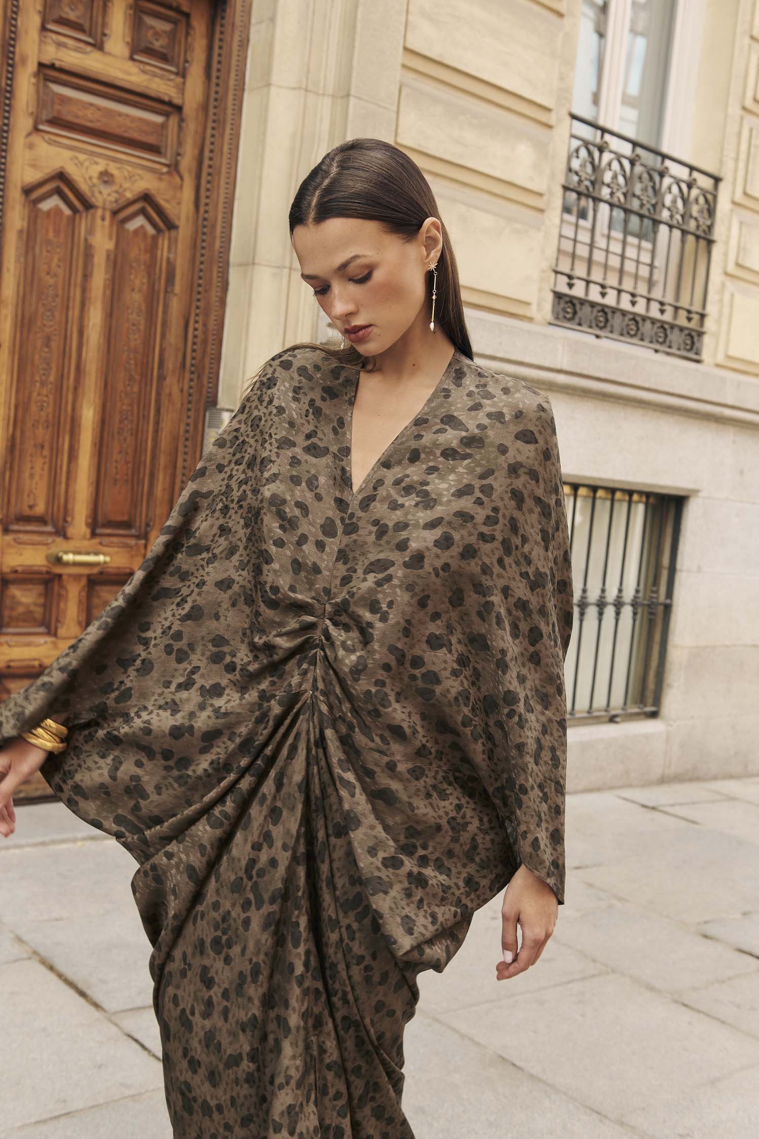 Este kaftán confeccionado en viscosa combina comodidad y estilo con un favorecedor frunce en la cintura y un elegante escote que realzan la silueta. Ideal para cualquier evento de otoño e invierno, aporta un toque sofisticado y versátil a tu armario. Su diseño cuidadosamente pensado te permite lucir atractiva y sentirte segura en cualquier ocasión.