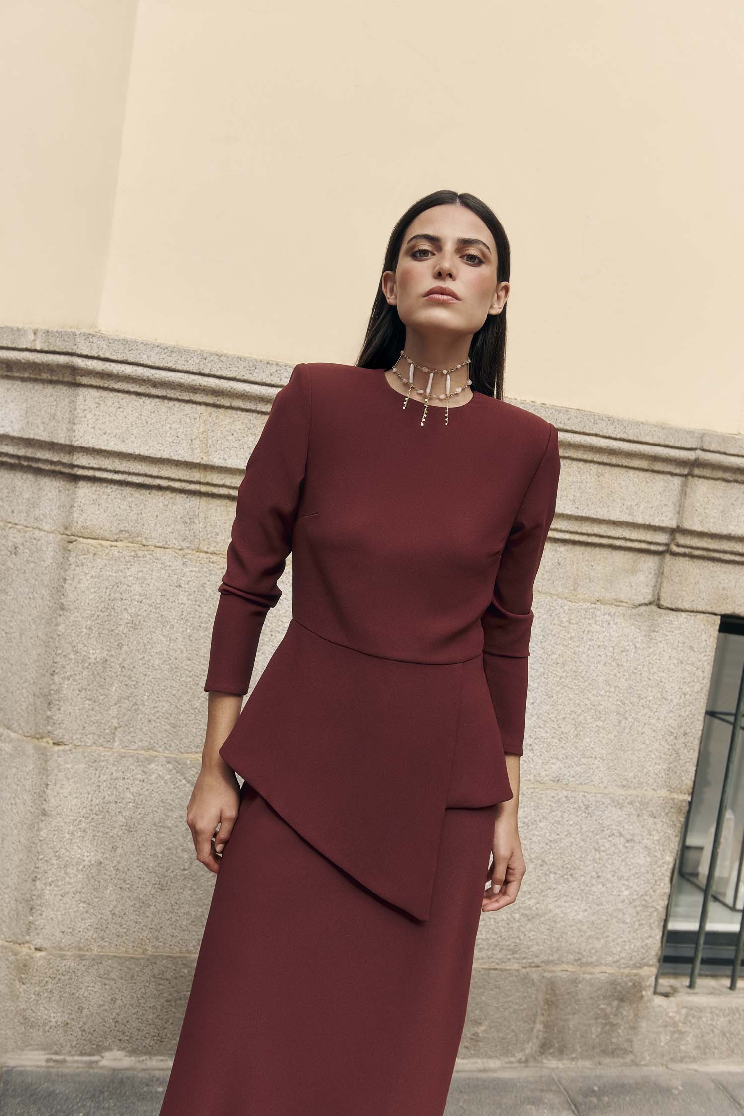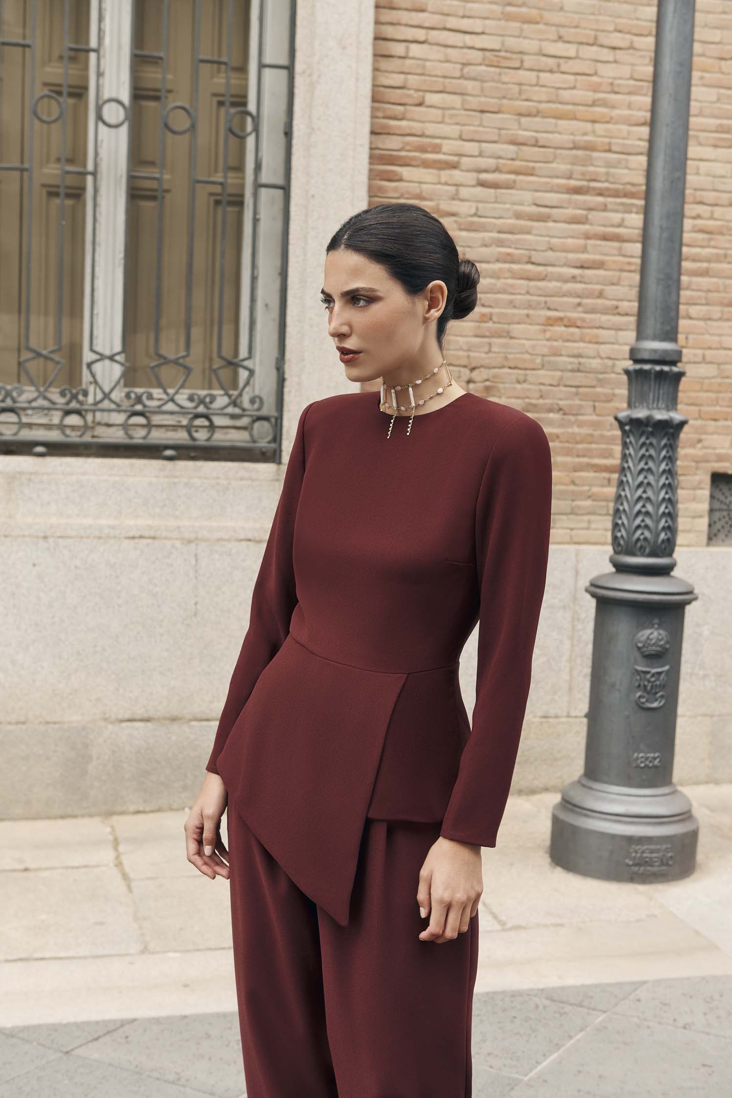 Este top Carmela confeccionado en crepe burdeos cuenta con cremallera trasera y hombreras que aportan estructura y estilo. Su corte ajustado a la cintura con caderín realza la figura, ofreciendo un ajuste elegante y cómodo. Perfecto para cualquier ocasión, combina a la perfección con la falda a juego para un conjunto cómodo o con los pantalones Carmela para un look más relajado y moderno. Una prenda versátil que no puede faltar en tu armario.